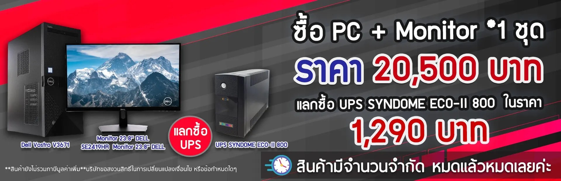 ซื้อ PC + Monitor *1 ชุด ราคา 20,555 (ไม่รวม vat) แลกซื้อ UPSในราคา 1,290